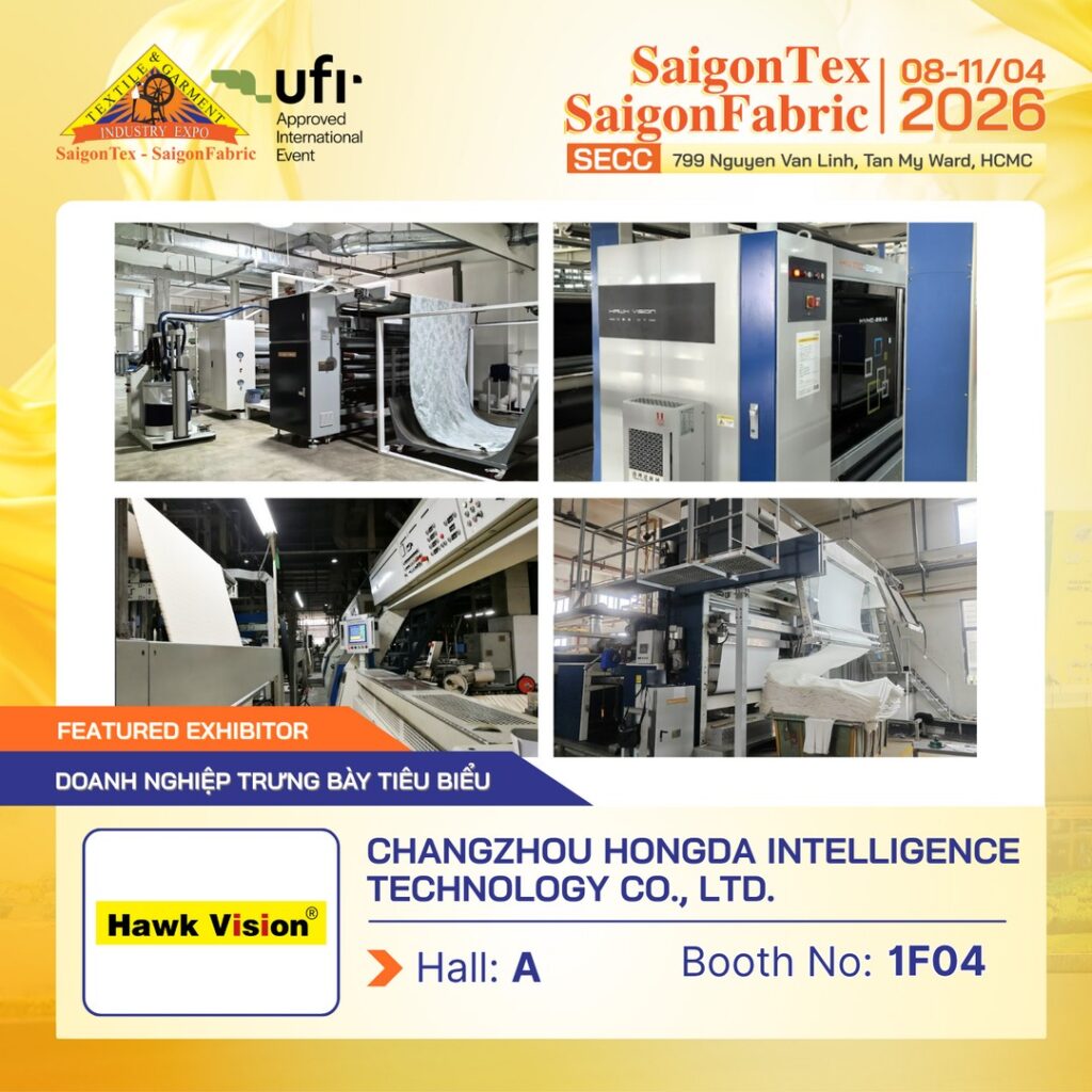 Tại Triển lãm Quốc Tế ngành Công nghiệp Dệt & May, Thiết bị nguyên phụ liệu & vải – SAIGONTEX – SAIGONFABRIC 2026, CHANGZHOU HONGDA INTELLIGENCE TECHNOLOGY CO., LTD. giới thiệu các giải pháp AI, thị giác máy (machine vision) và tự động hóa, giúp nâng cao hiệu quả kiểm tra và tối ưu hóa quy trình sản xuất dệt nhuộm.