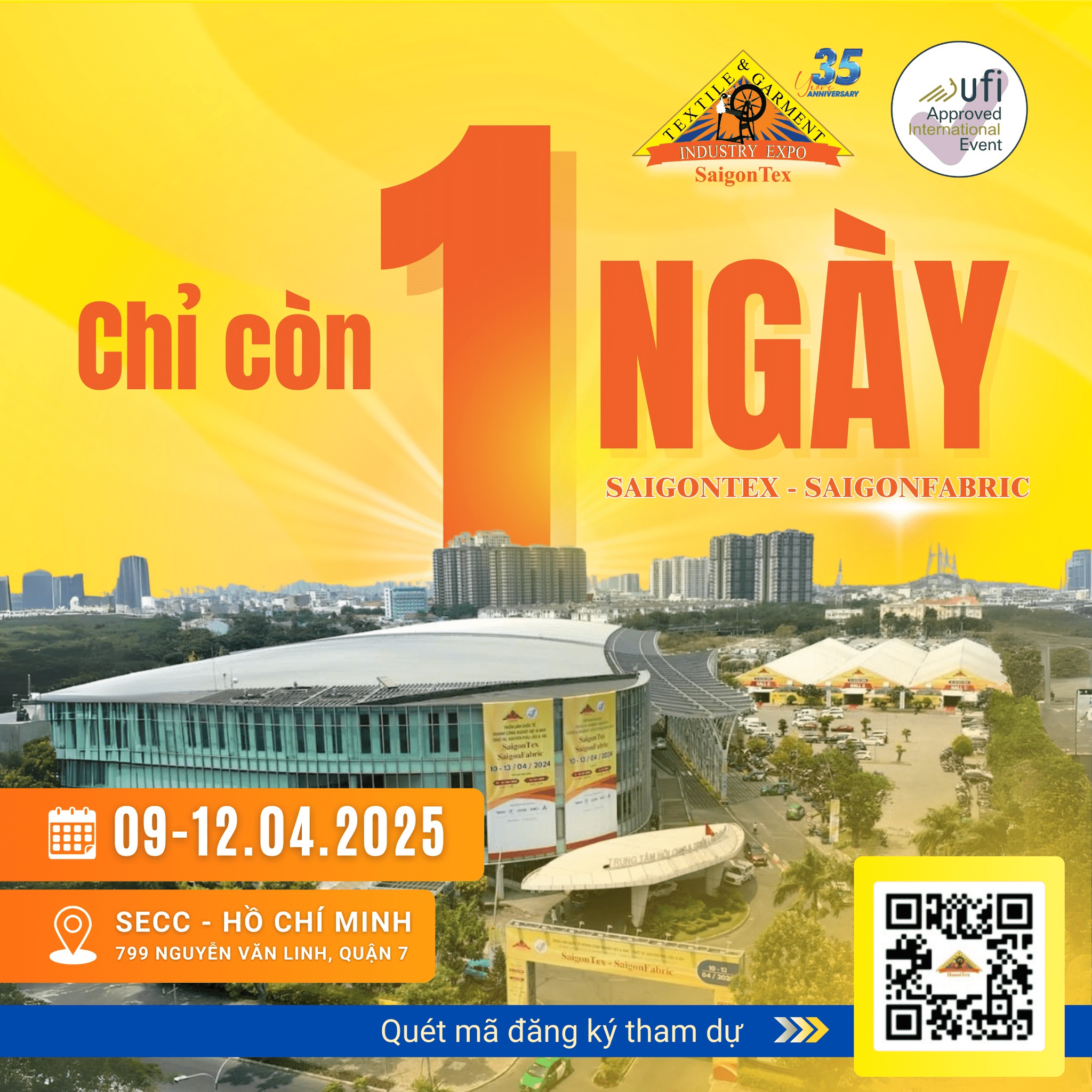 Ngày mai, Triển lãm Quốc tế Ngành Công nghiệp Dệt & May – Thiết bị & Nguyên phụ liệu (SaigonTex & SaigonFabric 2025) sẽ chính thức diễn ra tại SECC, TP. Hồ Chí Minh.
