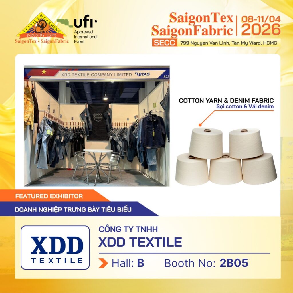 Hãy đăng ký tham quan Triển lãm Dệt May Quốc Tế quy mô hàng đầu – SaigonTex – SaigonFabric 2026 để gặp gỡ trực tiếp nhà cung cấp XDD Textile và khám phá các giải pháp sợi & denim chất lượng cao cho doanh nghiệp của bạn.
