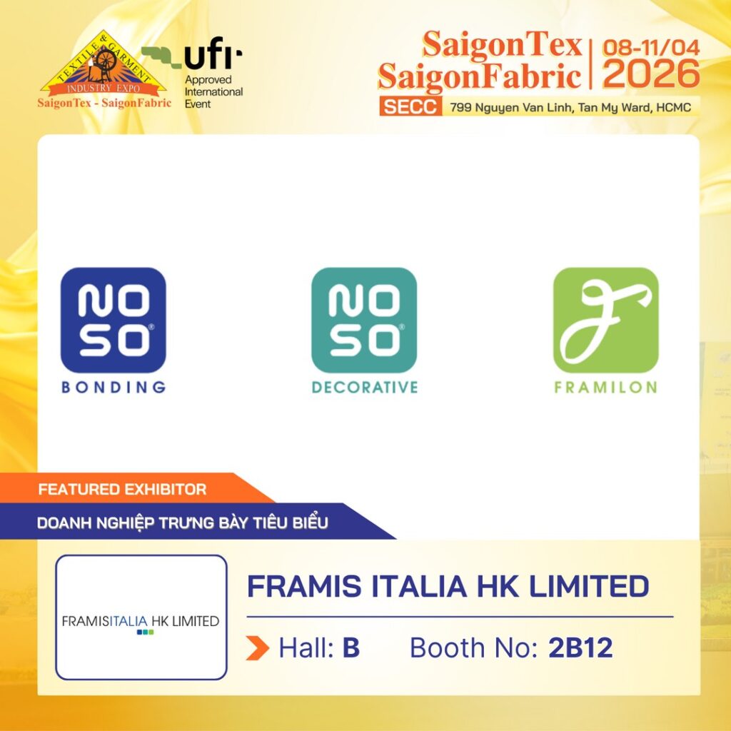 FRAMIS ITALIA HK LIMITED – Giải pháp nhiệt dính & trang trí tiên tiến cho ngành may tại SAIGONTEX – SAIGONFABRIC 2026