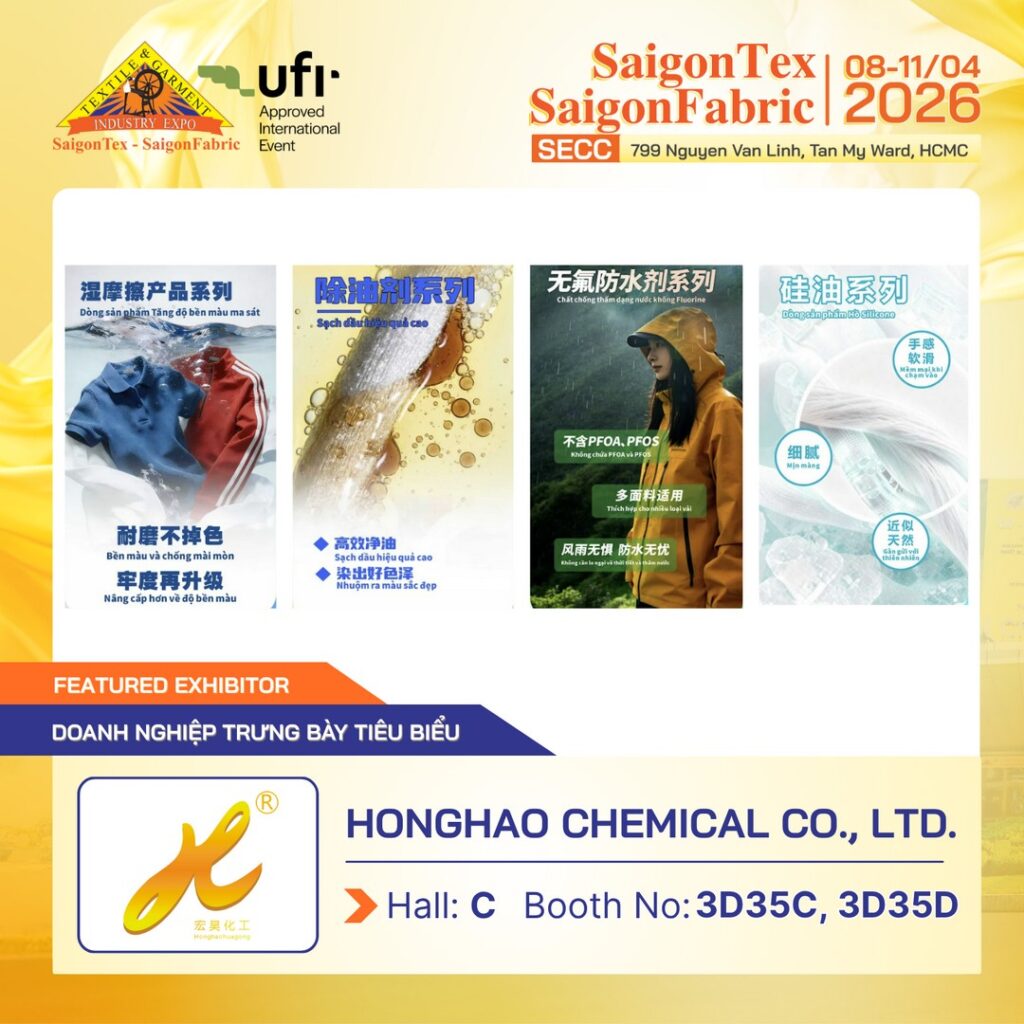 HONGHAO CHEMICAL CO., LTD. – Hóa chất dệt may toàn diện tại SAIGONTEX – SAIGONFABRIC 2026