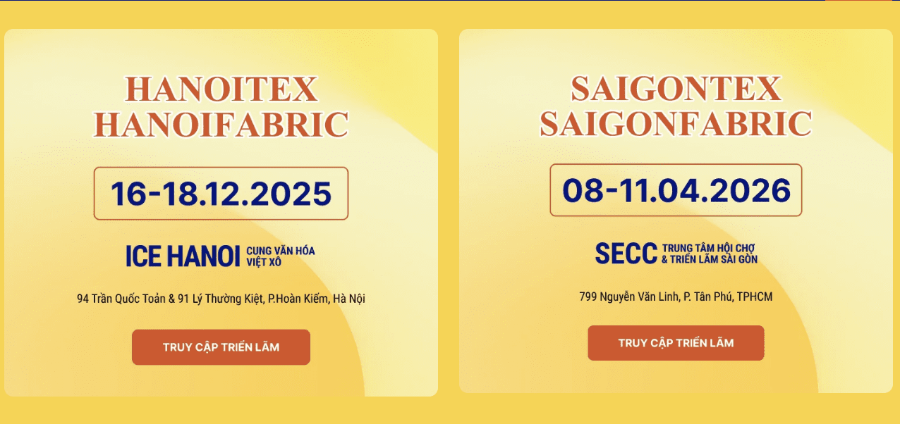 • HanoiTex & HanoiFabric 2025 | 16 – 18/12/2025 | Trung tâm Triển lãm Quốc tế I.C.E, Hà Nội