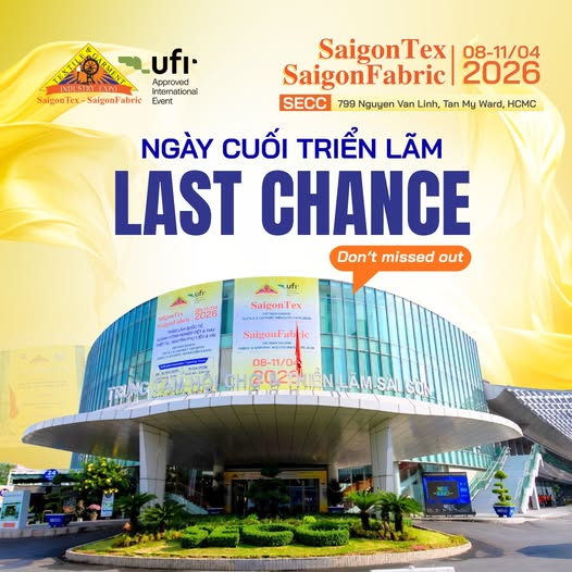 Hôm nay (11/04/2026), SaigonTex – SaigonFabric 2026 chính thức bước vào ngày cuối cùng tại Trung tâm Hội chợ và Triển lãm Sài Gòn (SECC), TP.HCM, khép lại chuỗi ngày giao thương sôi động của ngành dệt may quốc tế.