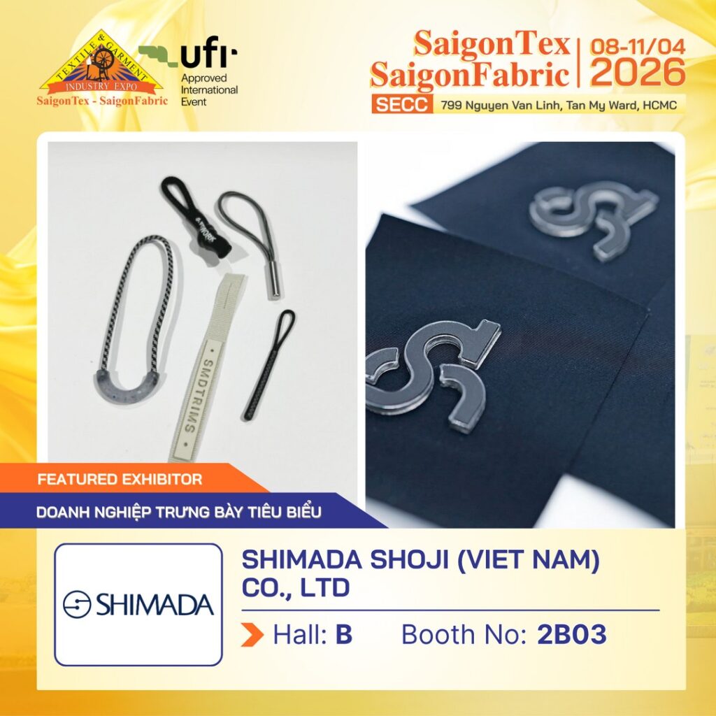 Tại Triển lãm Quốc Tế ngành Công nghiệp Dệt & May, Thiết bị nguyên phụ liệu & vải – SAIGONTEX – SAIGONFABRIC 2026, SHIMADA SHOJI (VIET NAM) CO., LTD giới thiệu các giải pháp nguyên phụ liệu may mặc và phát triển sản phẩm, đáp ứng nhu cầu toàn diện của ngành thời trang.