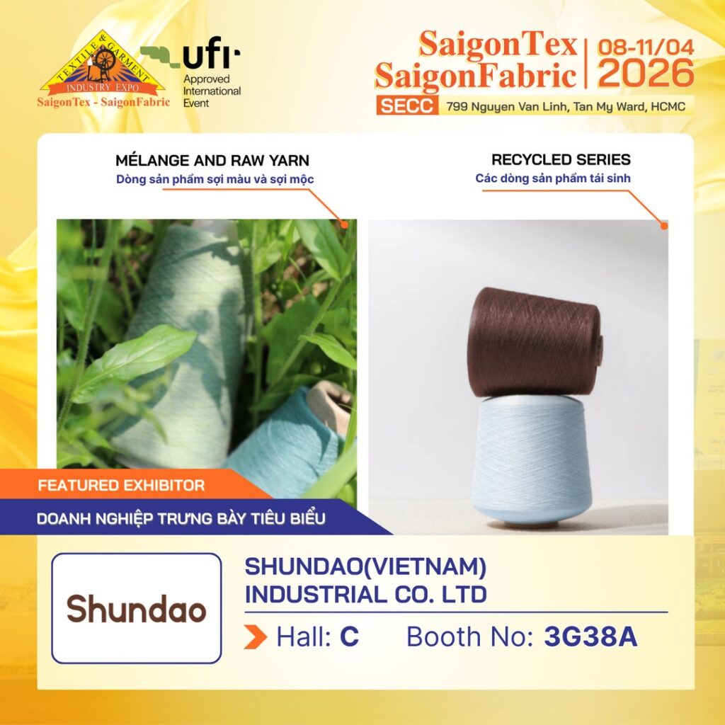 👉 Hãy đăng ký tham quan Triển lãm Dệt May Quốc Tế quy mô hàng đầu – SAIGONTEX – SAIGONFABRIC 2026 để gặp gỡ trực tiếp SHUNDAO VIETNAM và khám phá các giải pháp sợi phù hợp cho doanh nghiệp của bạn.