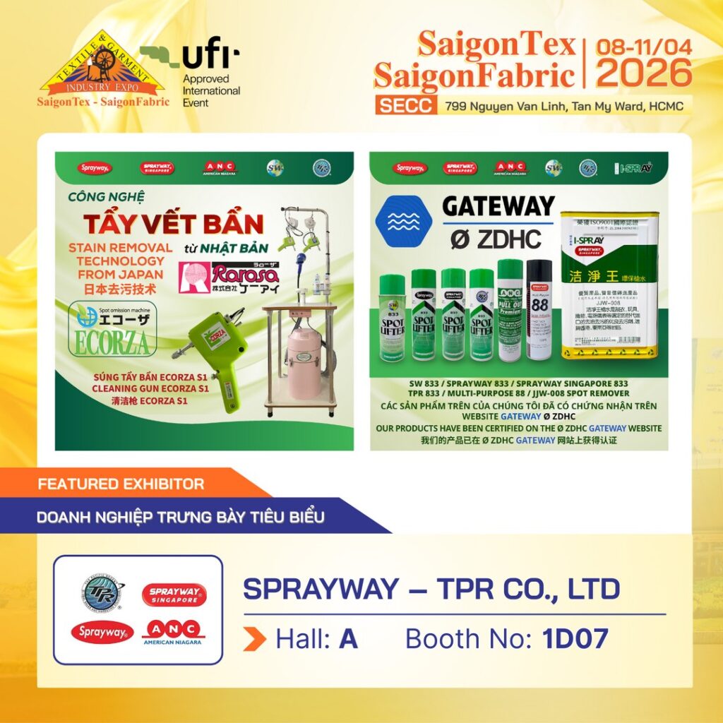 SPRAYWAY – TPR CO., LTD – Giải pháp hóa chất & thiết bị hỗ trợ dệt may tại SAIGONTEX – SAIGONFABRIC 2026
