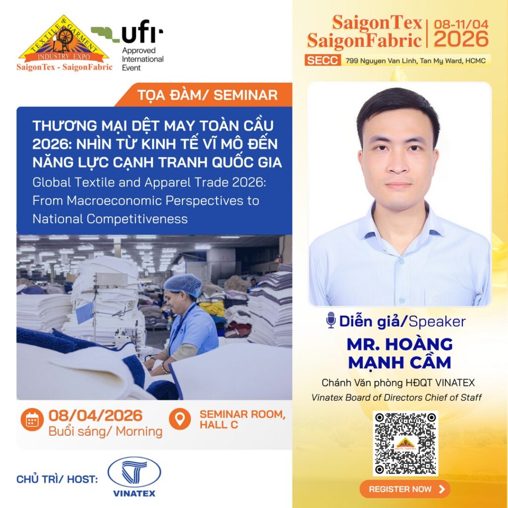 Trong khuôn khổ SaigonTex – SaigonFabric 2026, chương trình tọa đàm chuyên đề sẽ mang đến những góc nhìn chiến lược, giúp doanh nghiệp hiểu đúng – đi đúng – phát triển bền vững trong giai đoạn mới.