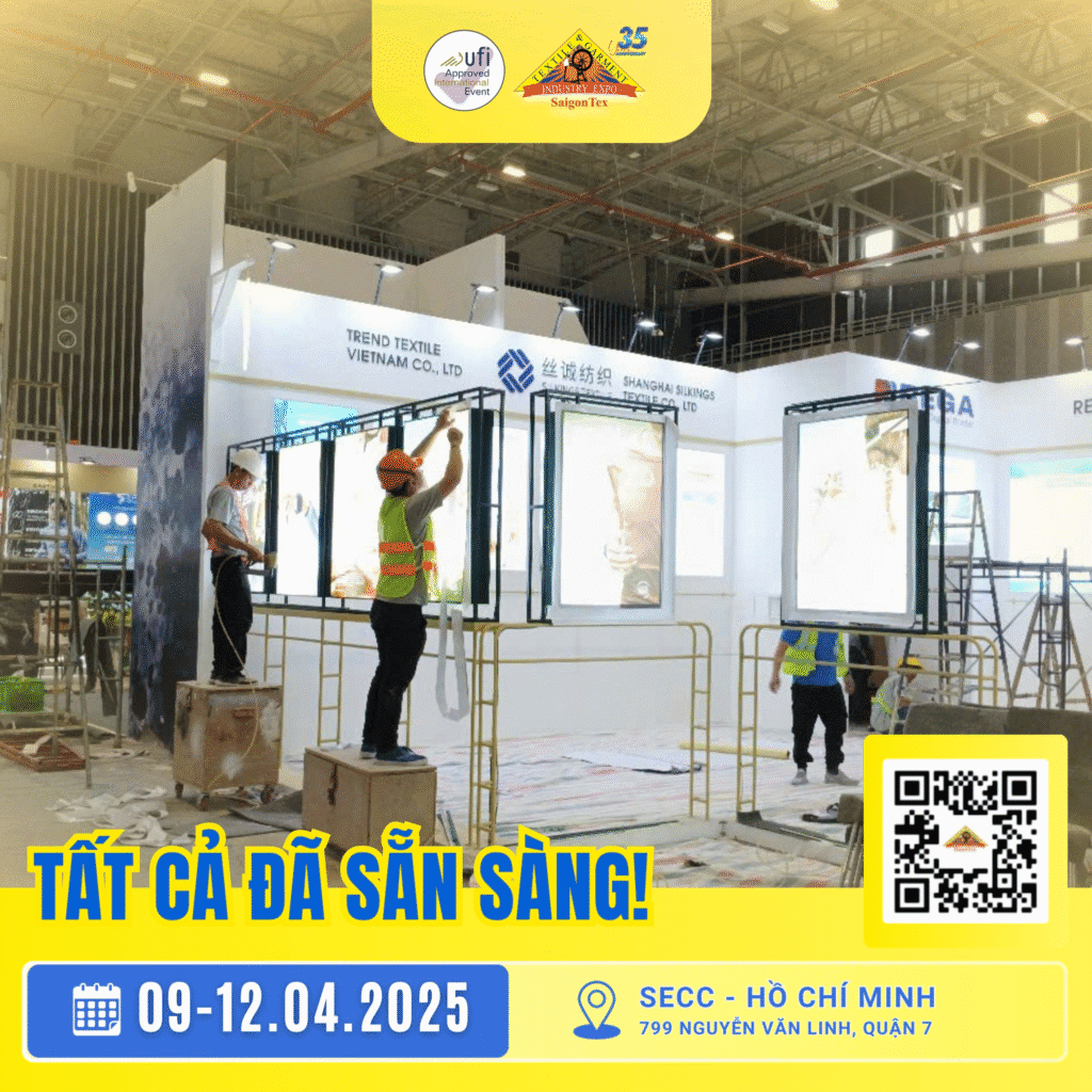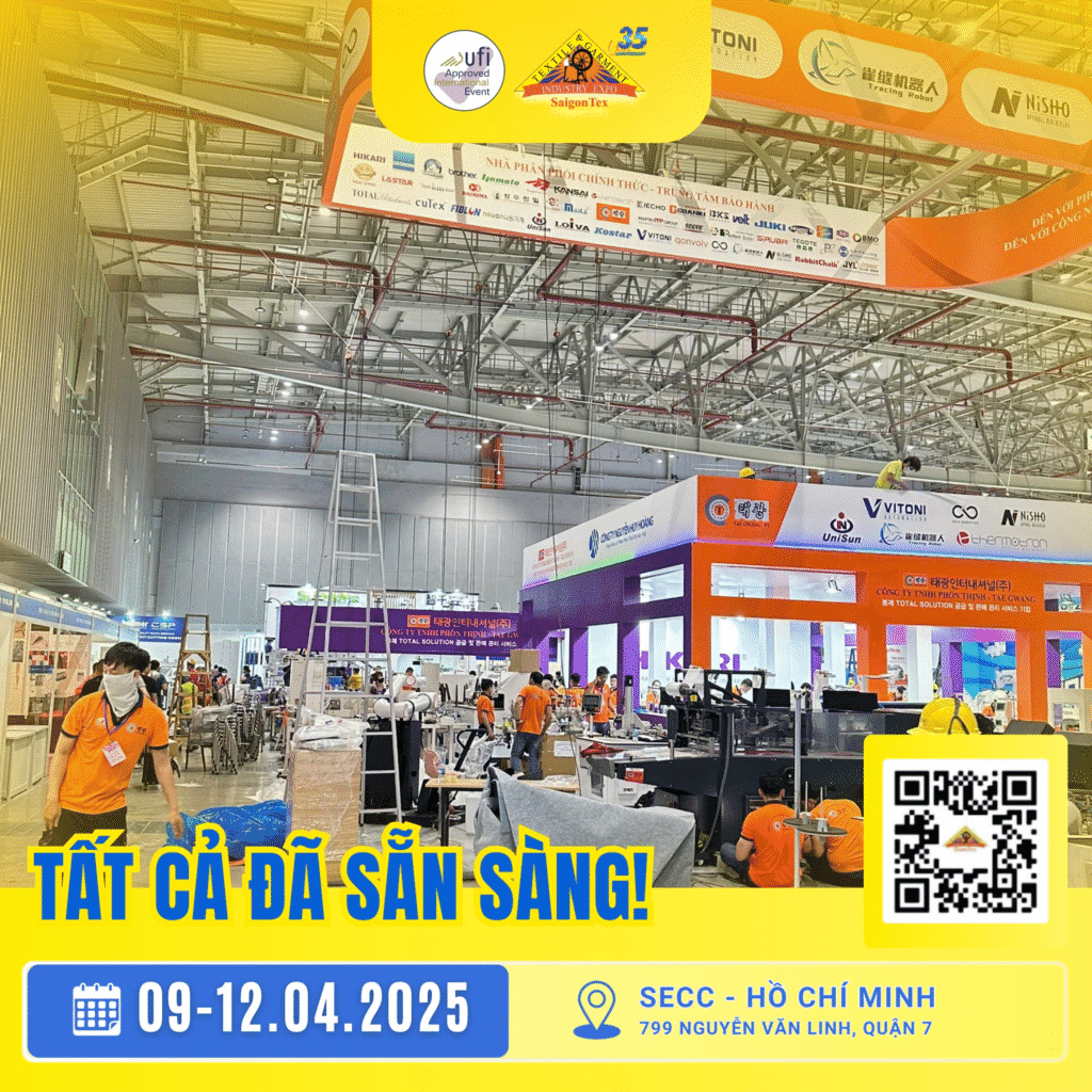 SaigonTex & SaigonFabric 2025 – Triển lãm quốc tế hàng đầu ngành dệt may Việt Nam – đã hoàn tất mọi khâu chuẩn bị và sẵn sàng mở cửa đón khách tham quan vào ngày 09/04/2025 tại Trung tâm Hội chợ và Triển lãm Sài Gòn (SECC), Quận 7, TP. Hồ Chí Minh.