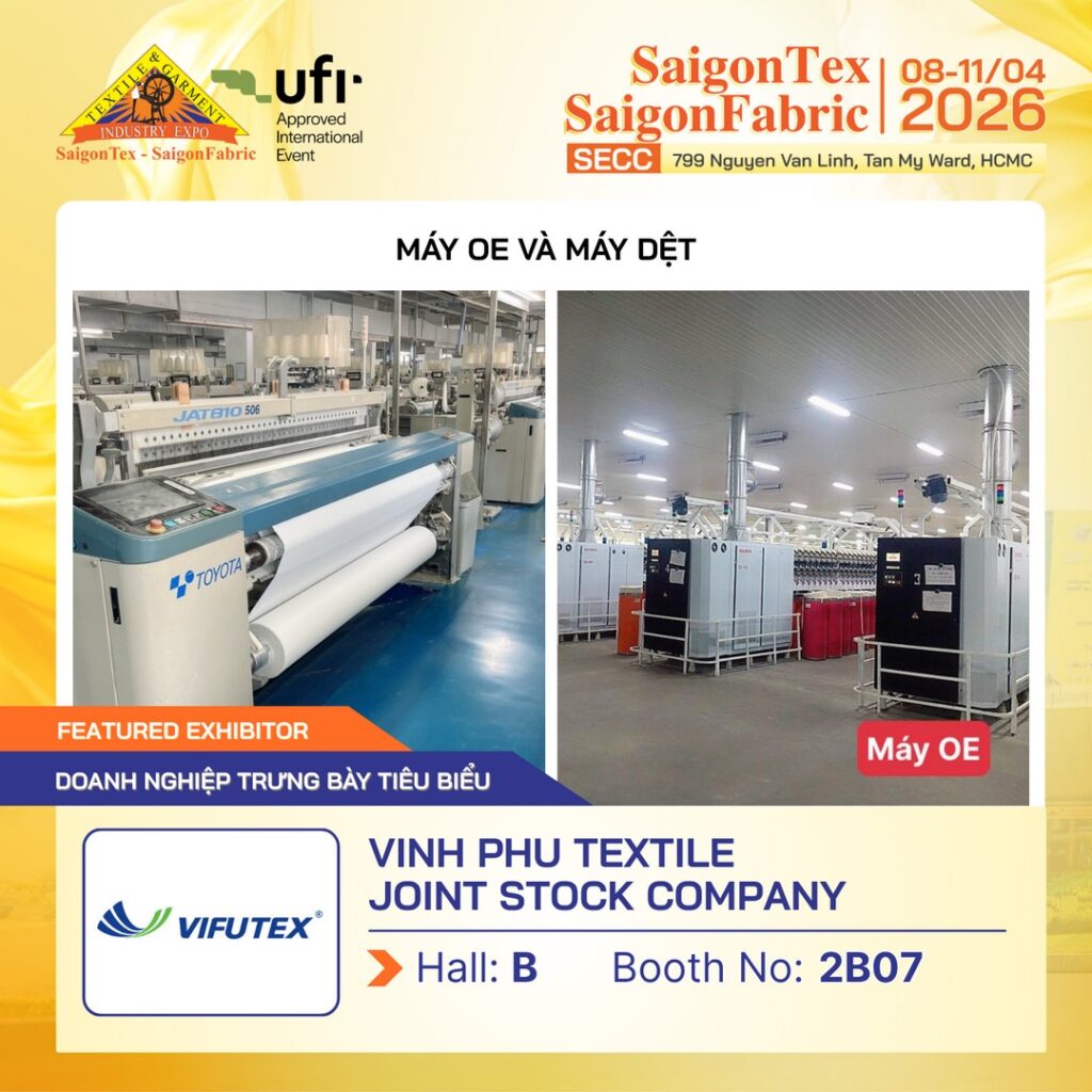 👉 Hãy đăng ký tham quan Triển lãm Dệt May Quốc Tế quy mô hàng đầu – SAIGONTEX – SAIGONFABRIC 2026 để gặp gỡ trực tiếp VIFUTEX và khám phá các giải pháp vải dệt phù hợp cho doanh nghiệp của bạn.